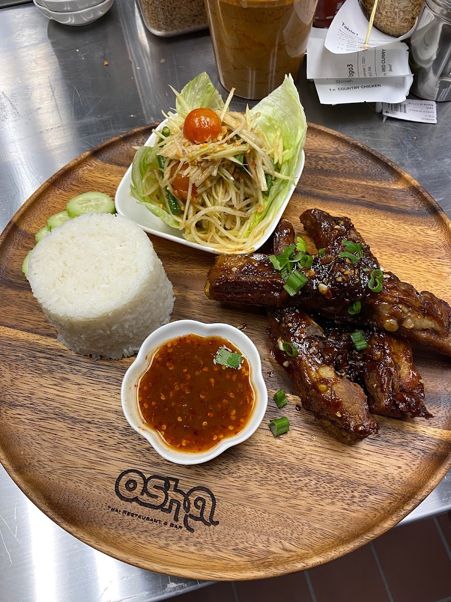 The menu shines with dishes that are both satisfying and memorable. The Crab Rangoon is a standout starter-crispy, golden pockets filled with creamy crab and just the right amount of seasoning. If you’re looking for a heartier option, the Chicken Prawn Pineapple Fried Rice is a crowd-pleaser. Sweet pineapple chunks and tender chicken and prawns blend seamlessly with fragrant rice, creating a dish that’s both comforting and vibrant. For those who like a kick of spice, the Spicy String Beans on a Bucket of Rice delivers a punch of heat balanced by the fluffy rice underneath. And for a true taste of Thai authenticity, the Pad Prik Khing is aromatic and flavorful, making every bite a journey of spices and textures.